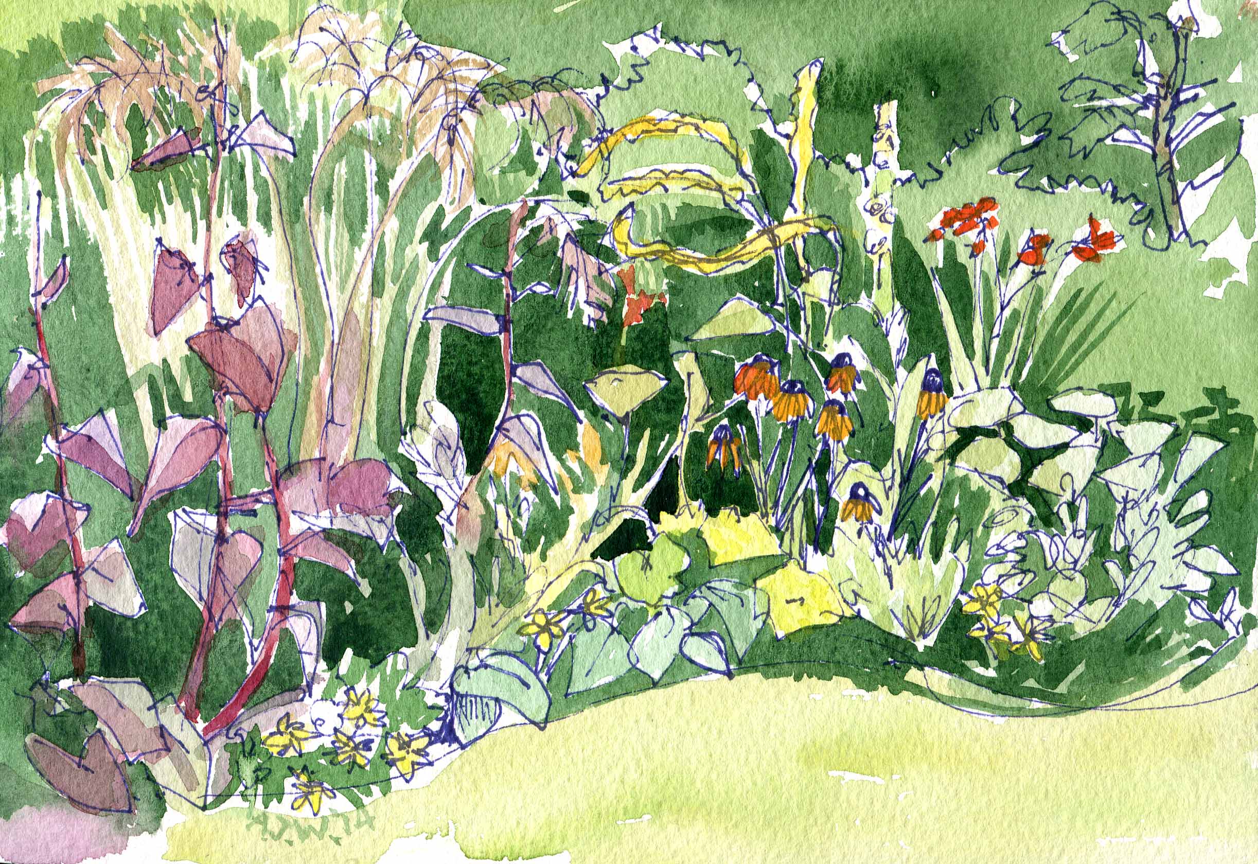 There are so many things in this border…Crocosmia, Sedum, Alchimilla, Stipa, Rudbeckia or Echinacia