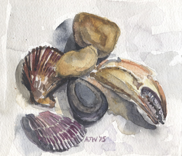 Beachcombings or three stones, two shells and a predator.