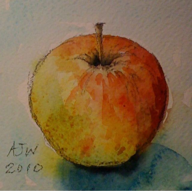 Anyway I did this quick sketch of a perfect Ellison’s Orange from high up on the tree, no sorry I was not high up on the tree, the apple came from there. It’s done with a charcoal pencil and wash