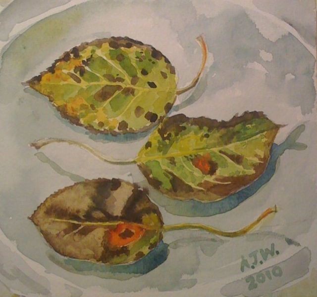 Apologies to those blog readers who like beautiful things, today I have painted dying leaves it’s a bit of a thing with me at this time of the year. I think they are lovely but they are also decaying. They are decaying after a job well done. Think Whistlers mother.