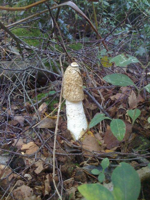There are still ceps to be found but the cold nights are going to discourage them. I am bored with the same old wood and want to go and check some different places. That’s not to say that I don’t get a thrill when I see a neat and prim baby cep sitting in the moss where there was nothing yesterday. When they are young they are very upright and straight-laced, as they age they get more wild and blowsy…no parallels there then. I have been watching a round ball slowly emerge from the woodland floor by a path, I had decided that it was not likely to be a cep, now it has sprung up and it stinks. See the photo below, the stinkhorn- it does what it says on the can.