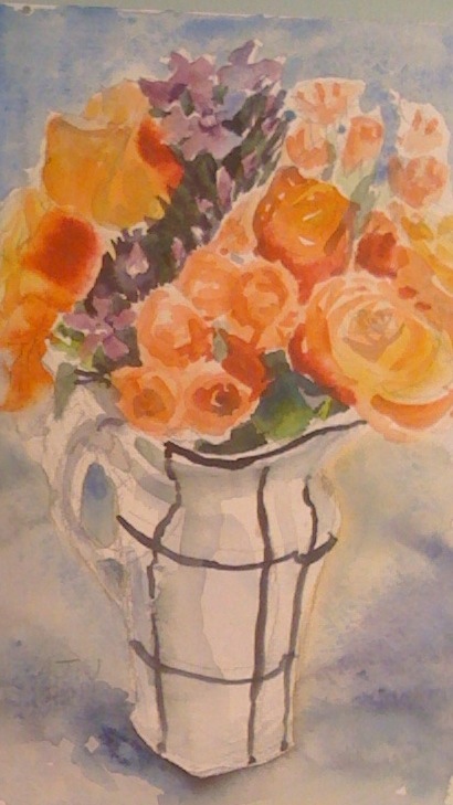 This is as much painting as I have done this week. its a bright posy of flowers from the supermarket: roses , carnations and phlox.