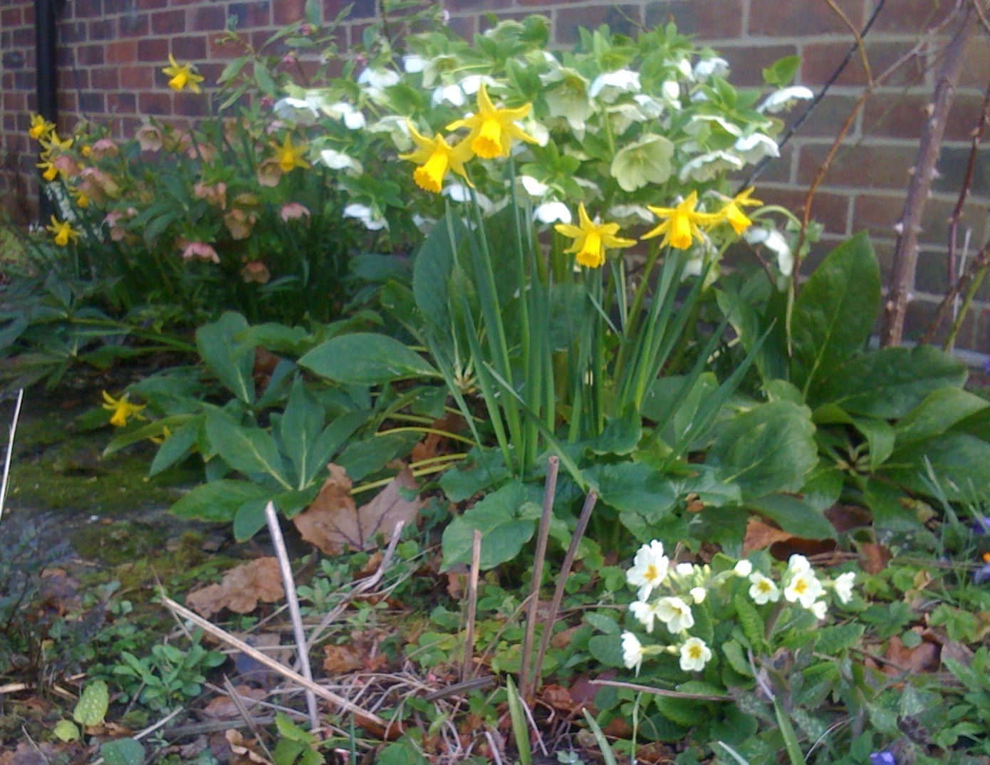 This is a repeat photograph of a view taken in the first week of April last year (see blog entry 6 April 2010), this year the “February Gold” narcissi began opening in February and the Hellebores are in their prime now in March. We have a fickle climate and the plants must follow each season as it comes.