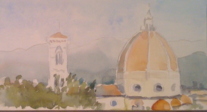 This would have been my next sketch had there been time. Its a view back to Florence from the top of the Boboli Gardens.