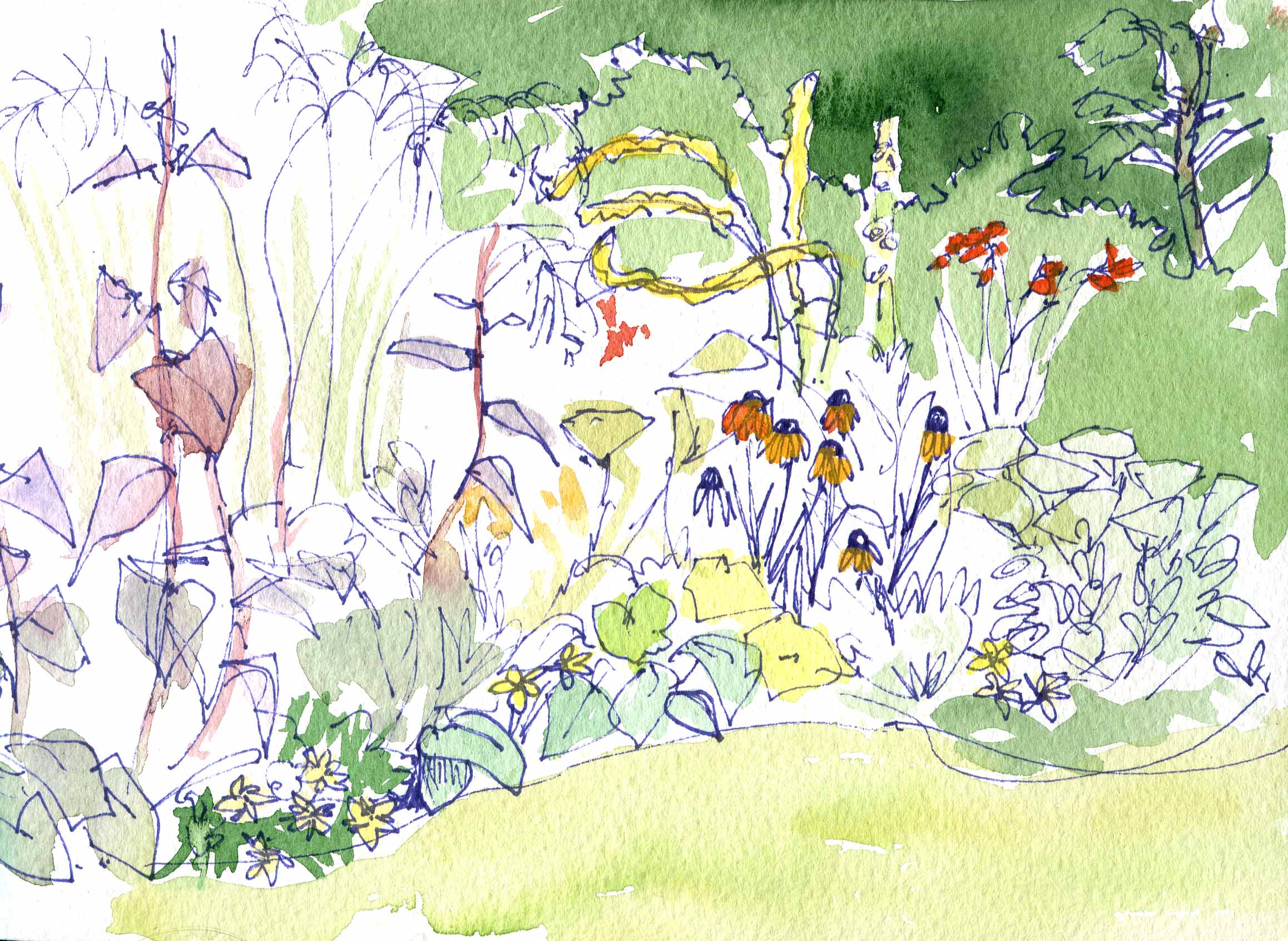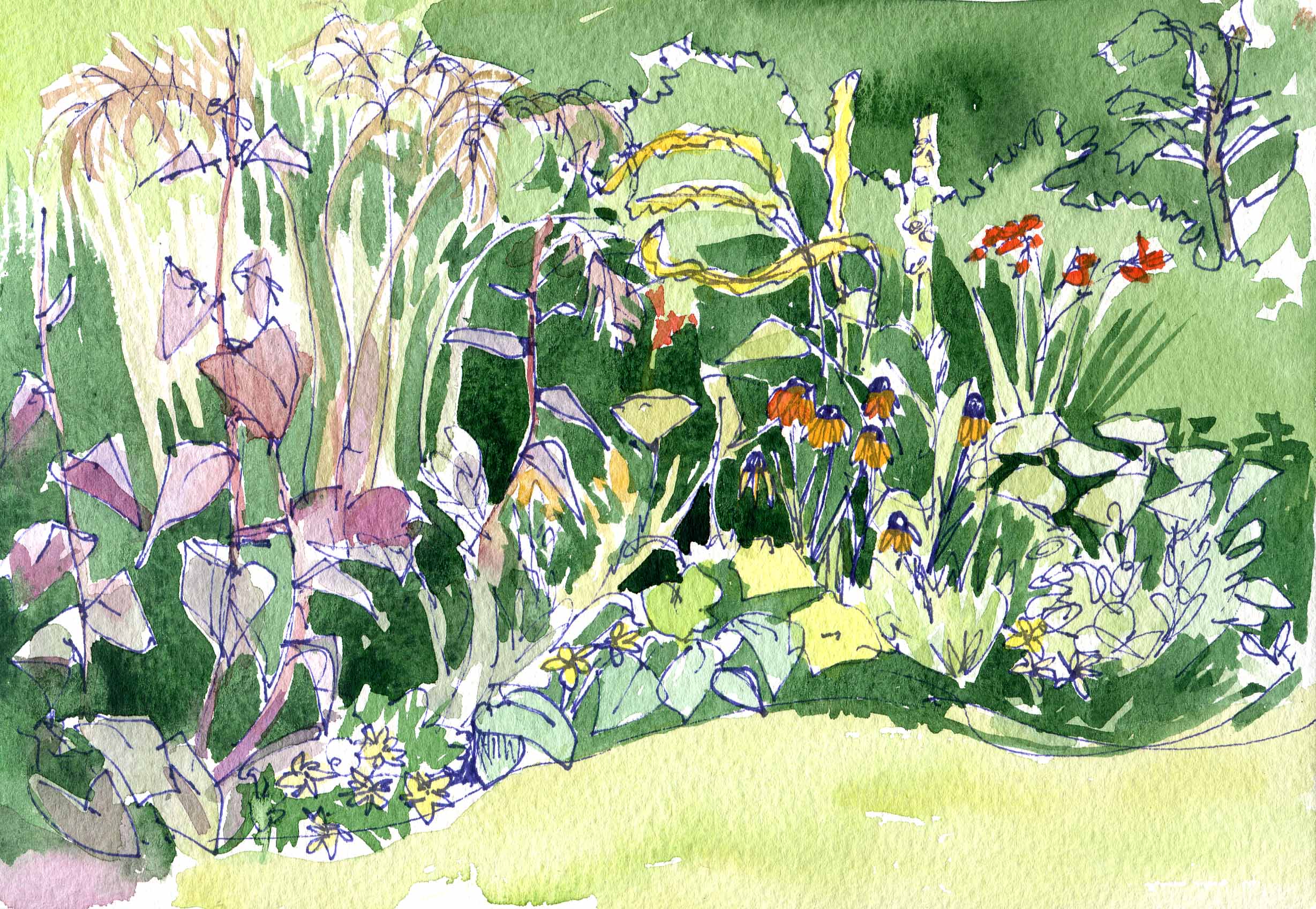 There are so many things in this border…Crocosmia, Sedum, Alchimilla, Stipa, Rudbeckia or Echinacia