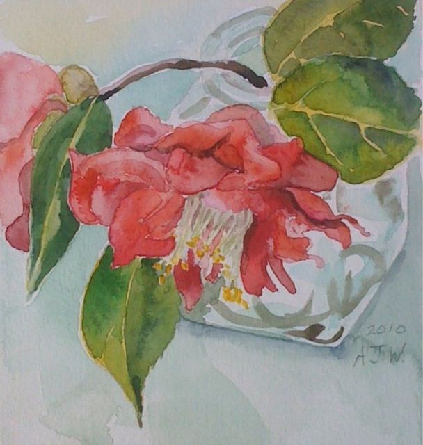 This is the last of my mother’s camellias; they do not last very long in water.