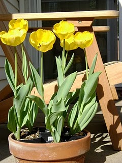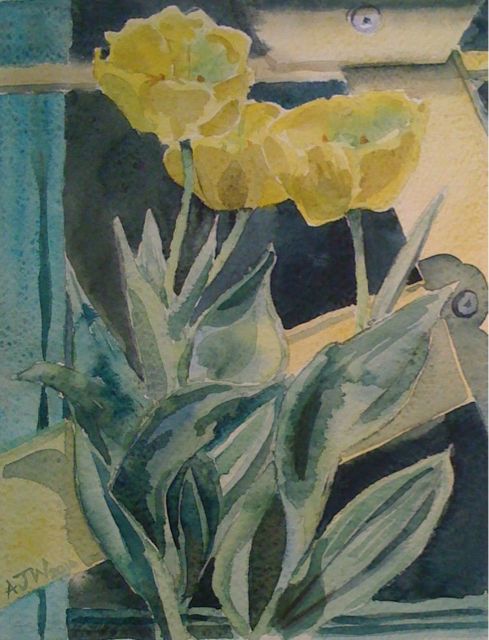 This is a go at doing the challenge on Rookie Artist where anyone can do a picture based on a photograph put on the web once every three weeks. The photograph was of yellow tulips growing in a pot which I cropped heavily.