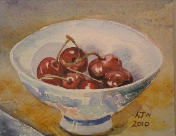 The secret with the watercolour is to use clean water as a paint. For example yesterday’s picture bled dark purple onto the background so much that the picture lost definition, I managed to wash it away carefully and soak the extra water up into a tissue. This restored the shadow to a paler more realistic tone. I am still not entirely happy with the stalks and highlights but the picture does have a 3D look in thumbnail. That tells me that broadly speaking the tones are right.