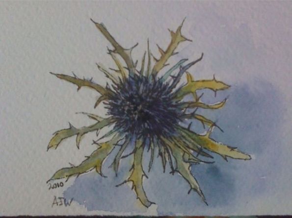 The sea holly is in pen and wash. The colour is actually quite tricky to get as there is a vibrancy to the blue but it’s not a strong colour.