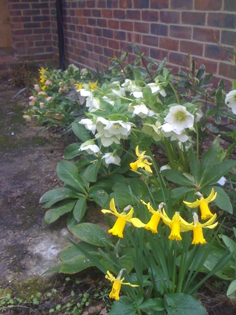Here too is a photograph of the hellebore bed; I am trying to get a decent picture of one of the double flowers they are each bouquets in their own right.